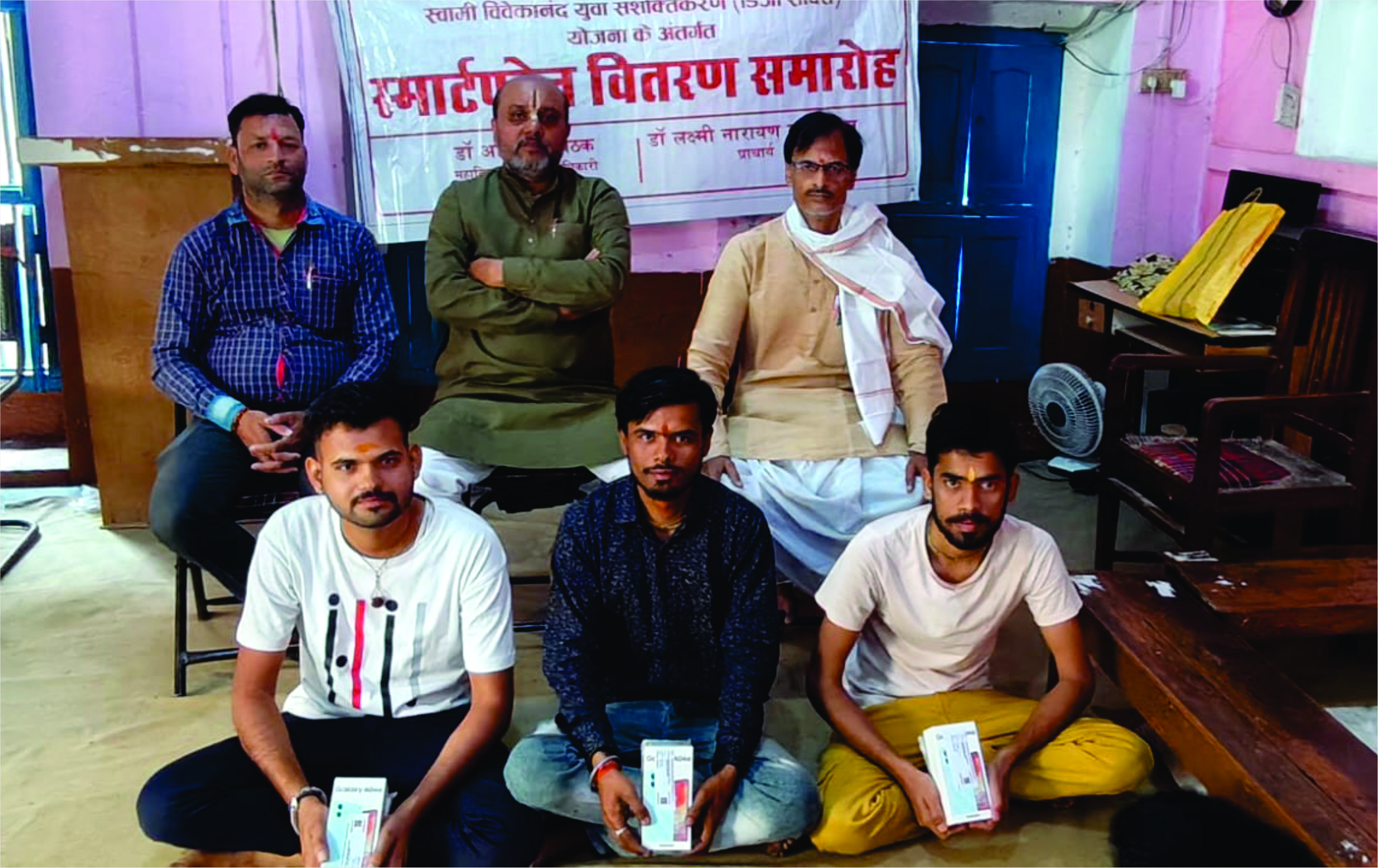 महाविद्यालय मोबाइल वितरण कार्यक्रम सम्पन्न हुआ जिसके तहत छात्रों को मोबाइल वितरण किया गया इस अवसर पर महाविद्यालय के सभी पदाधिकारी व शिक्षकणगण उपस्थित थे तथा छात्रों को उच्च तकनीक के मोबाइल फोन वितरित किया गया।